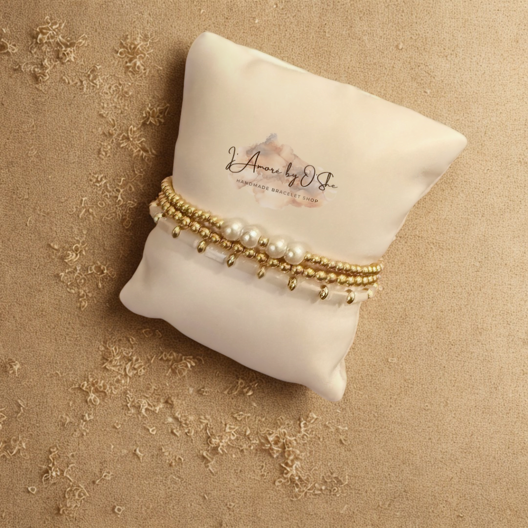The Grace Adorned Stack is a radiant blend of luminous pearls and golden details, designed to embody elegance and divine favor. Each bracelet reflects the beauty of grace—pure, timeless, and powerful. Layered together, this set crowns your wrist with sophistication and faith, making it a statement piece for both everyday wear and special occasions.